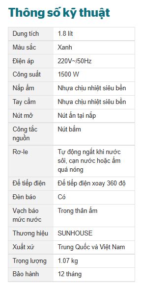 ẤM SIÊU TỐC SUNHOUSE SHD 1351 1.8L