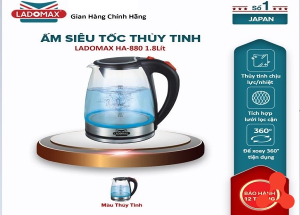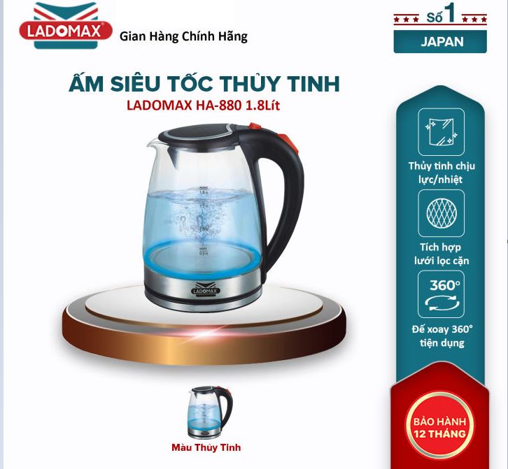 ẤM SIÊU TỐC THUỶ TINH LADOMAX HA- 880