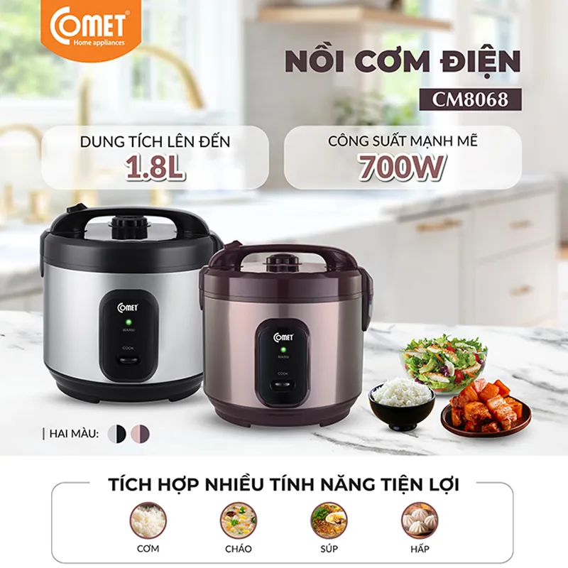 NỒI CƠM ĐIỆN NẮP GÀI 1,8L COMET CM8068 (T4)