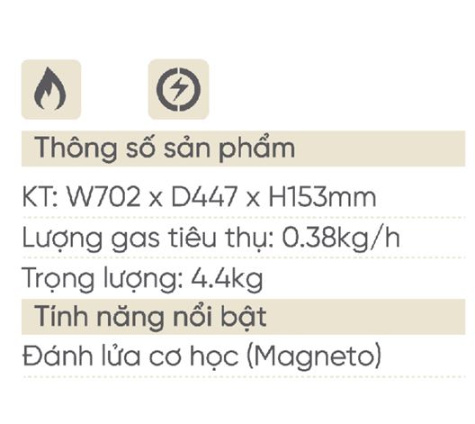– Đầu đốt được làm bằng gang dày dặn, giữ nhiệt cực tốt, lâu bị bào mòn nên độ bền cao, thiết kế đầu đốt kín giúp tiết kiệm gas và ngăn không cho thức ăn đổ vào bên trong bếp.
