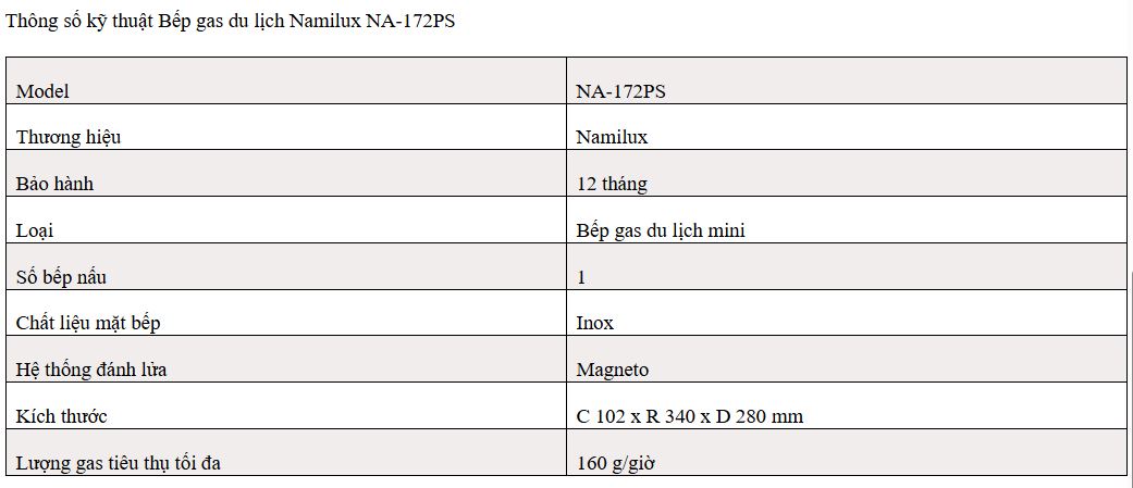 BẾP GAS DU LỊCH MINI NAMILUX NA-172PS