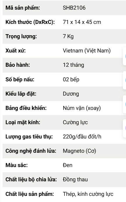 BẾP GAS DƯƠNG KÍNH SUNHOUSE SHB2106
