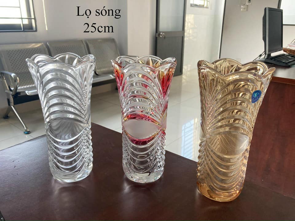 • BÌNH CẮM HOA HOẠ TIẾT SÓNG 25CM MÀU ĐỎ