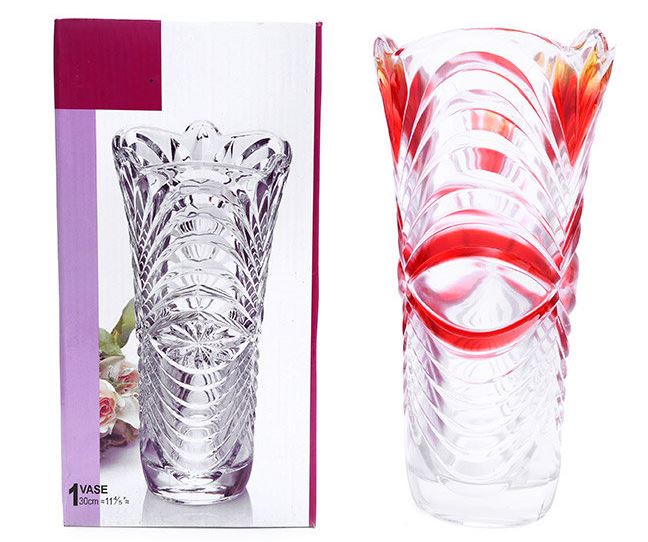 BÌNH CẮM HOA HOẠ TIẾT SÓNG 25CM MÀU ĐỎ