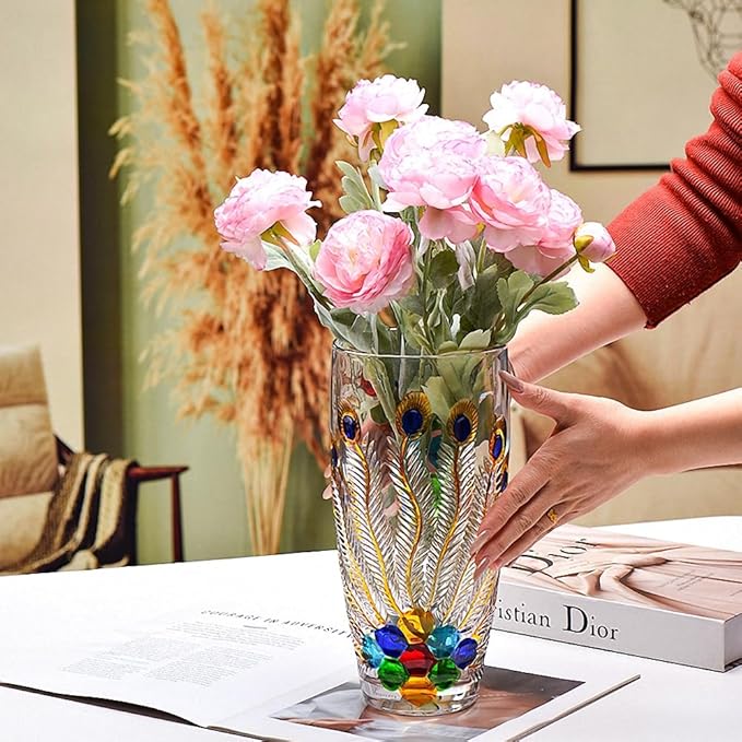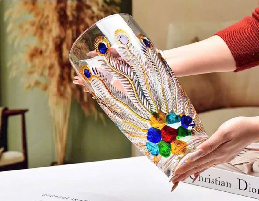 Bình cắm hoa thủy tinh pha lê hình con công là dòng sản phẩm decor cao cấp, nổi bật với thiết kế uốn lượn mềm mại cùng hiệu ứng màu sắc bắt mắt. Hình tượng con công tượng trưng cho sự giàu sang, quyền quý và may mắn, giúp không gian trở nên sang trọng và thu hút hơn.
