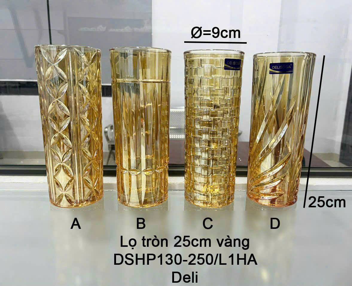 BÌNH CẮM HOA THỦY TINH VÀNG 25CM DSHP130- 250L1