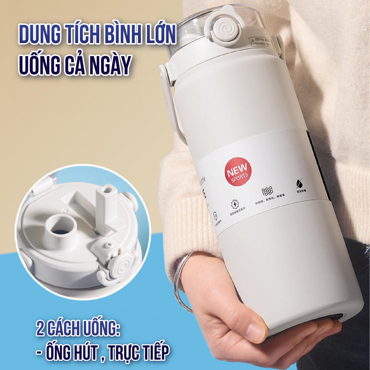 Thiết kế tiện lợi: Miệng bình rộng dễ dàng cho đá và vệ sinh, có tay cầm, nắp kèm cốc và một số mẫu có thêm quai xách, dây đeo hoặc ống hút.