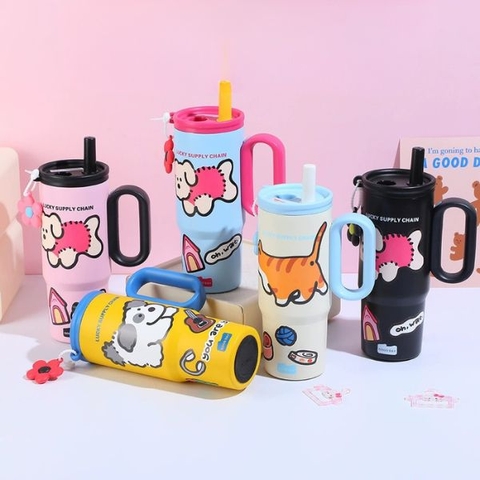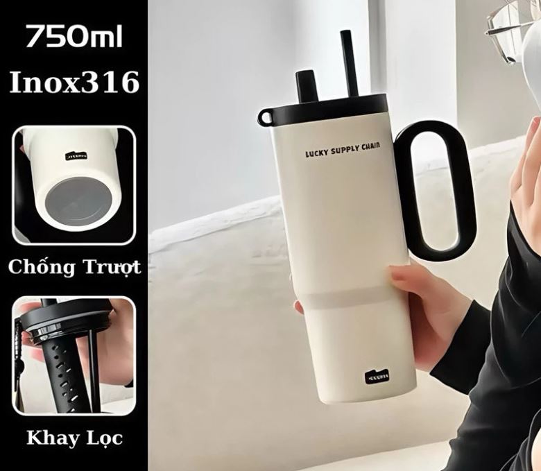 • BÌNH GIỮ NHIỆT INOX 720ML QUAI CẦM KÈM ỐNG HÚT