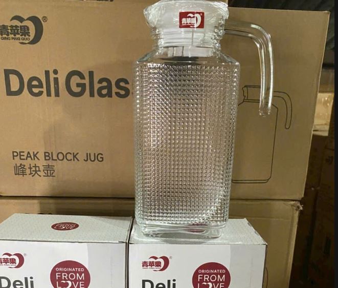 BÌNH NƯỚC THỦY TINH KIM CƯƠNG DELI 1600ML CÓ TAY CẦM (T12)
