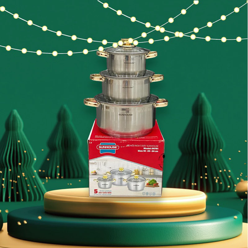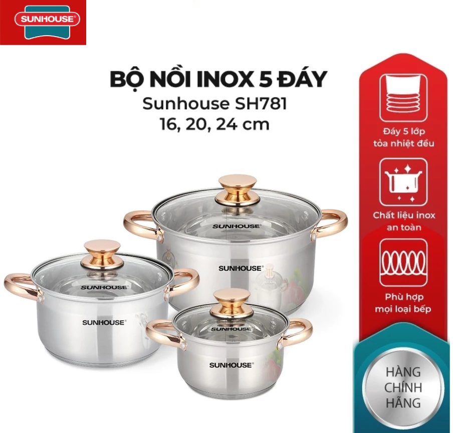 BỘ 3 NỒI INOX 5 ĐÁY SUNHOUSE SH781