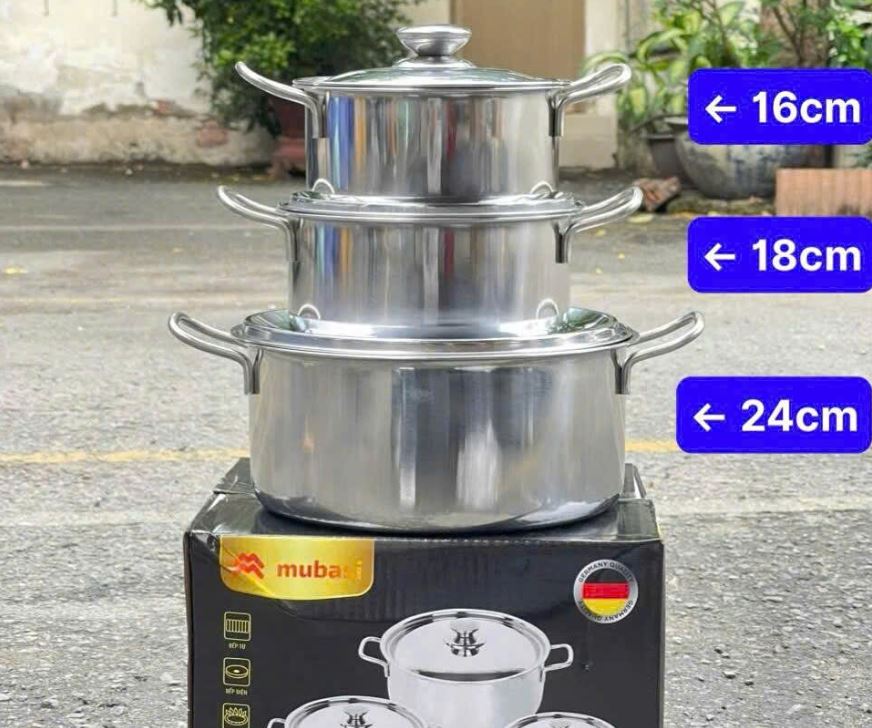 Bạn đang tìm kiếm một bộ nồi vừa bền bỉ, vừa đẹp mắt lại an toàn cho sức khỏe? Vậy thì BỘ 3 NỒI INOX MUBASI CÓ QUAI CAO CẤP chính là sự lựa chọn hoàn hảo dành cho bạn. Không chỉ là dụng cụ nấu nướng, bộ nồi này còn là điểm nhấn tinh tế cho không gian bếp của gia đình bạn.