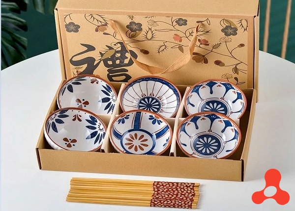 BỘ 6 CHÉN QUÀ TẶNG HOẠ TIẾT VIỀN NÂU