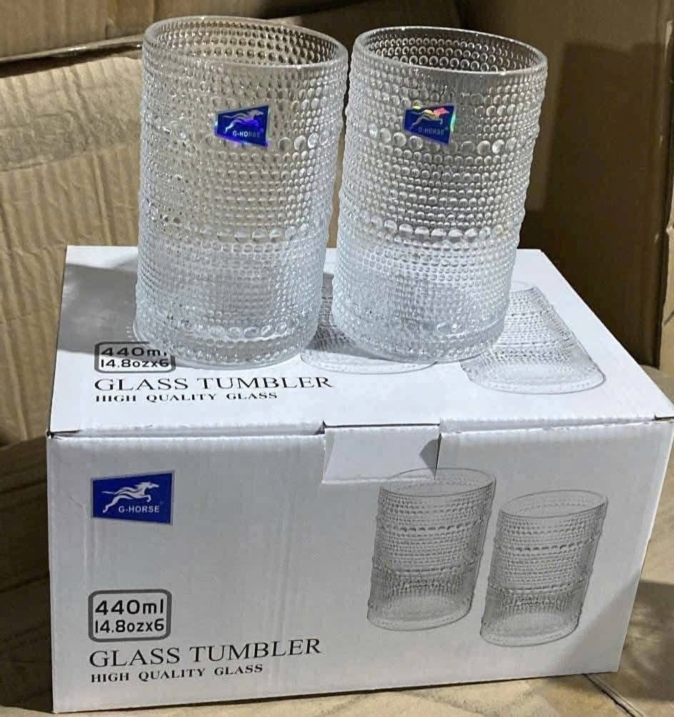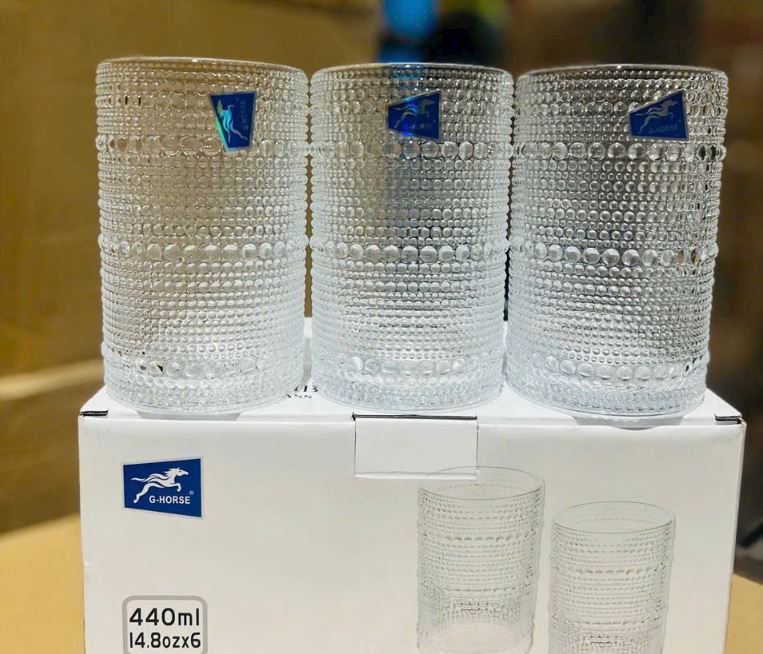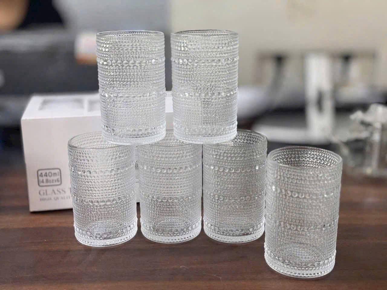 BỘ 6 LY THUỶ TINH CHẤM BI GIỌT NƯỚC 440ML (T8)