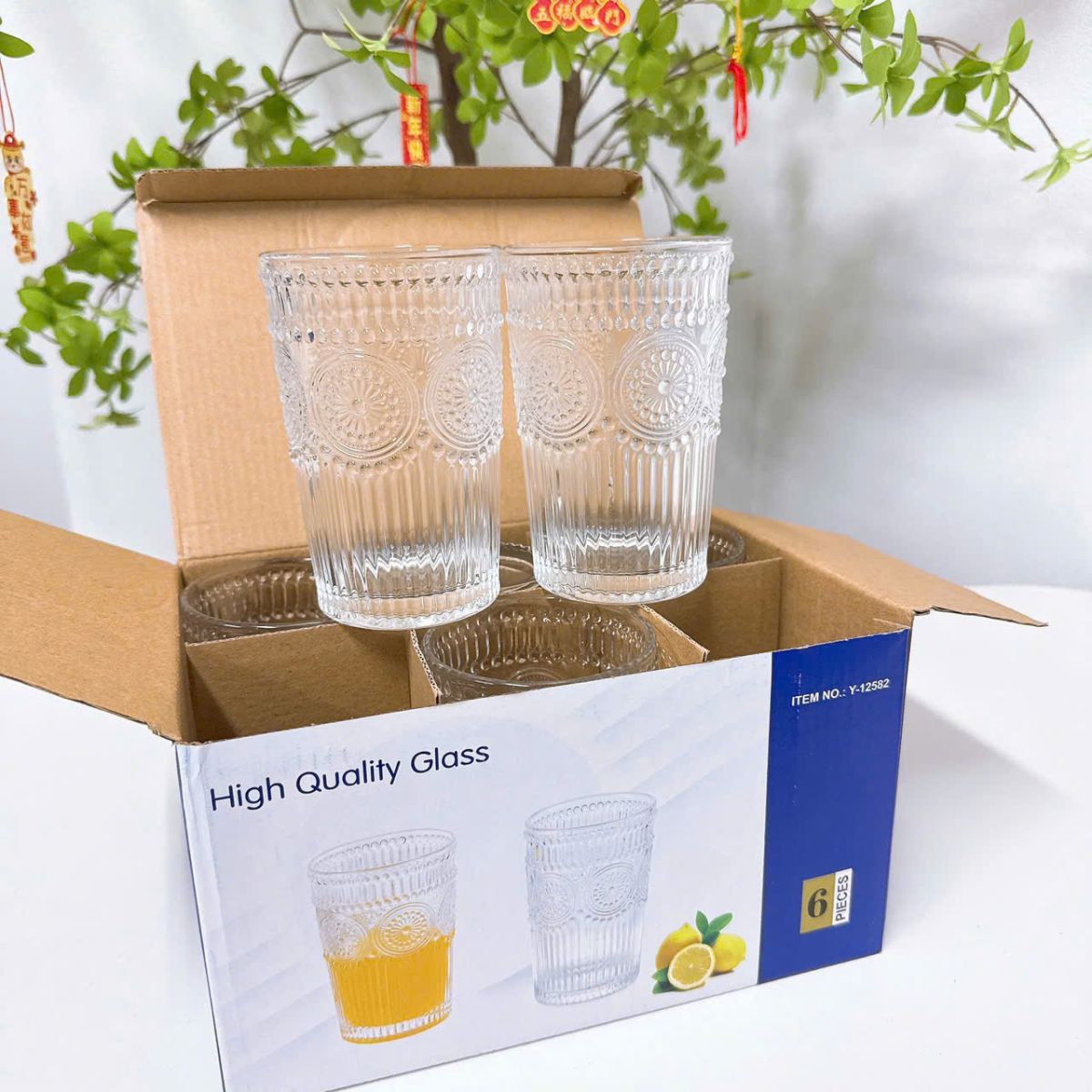 - Thiết kế sang trọng: Họa tiết hoa hướng dương nổi bật trên thủy tinh trong suốt, phù hợp sử dụng cho nhiều không gian như gia đình, quán cafe, nhà hàng.
