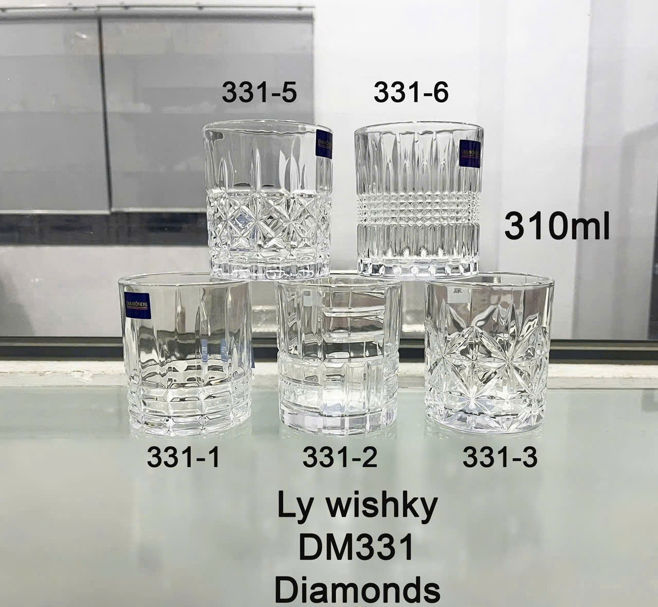 BỘ 6 LY THUỶ TINH WISHKY 310ML DIAMONDS DM331 (T12)