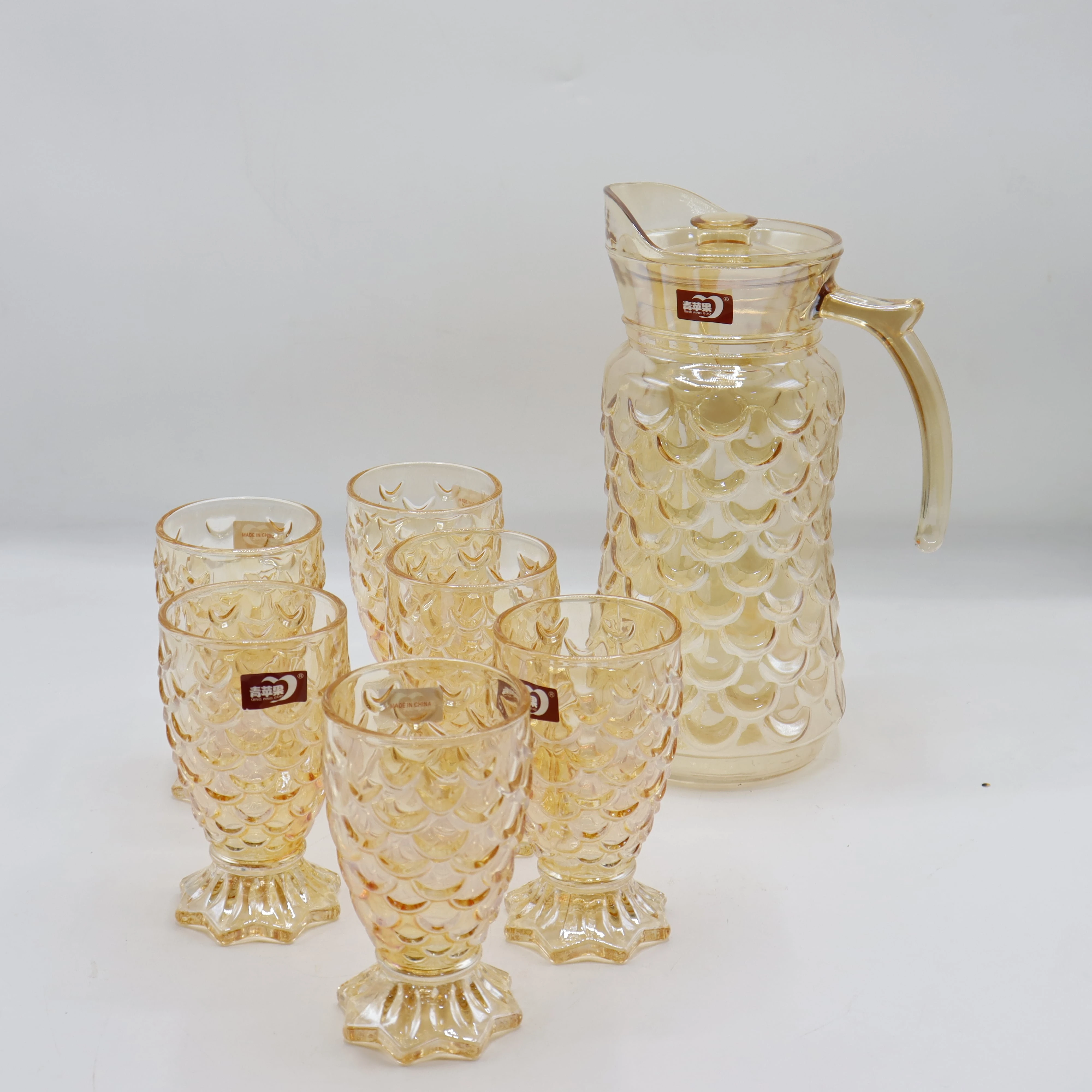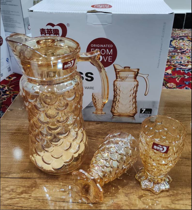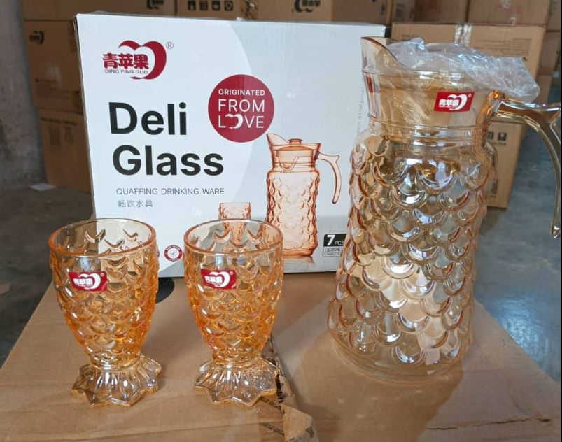 Tên sản phẩm : BỘ BÌNH THUỶ TINH DELI VÀNG KÈM 6 LY VẢY CÁ YZH-34L76 (T6) ( sản phẩm quà tặng)