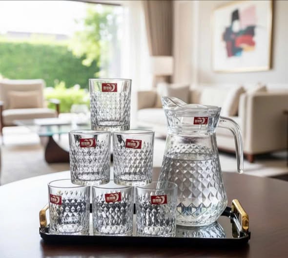 BỘ BÌNH THUỶ TINH KÈM 6 LY SỌC A-EH1009-2BL7 (T6)