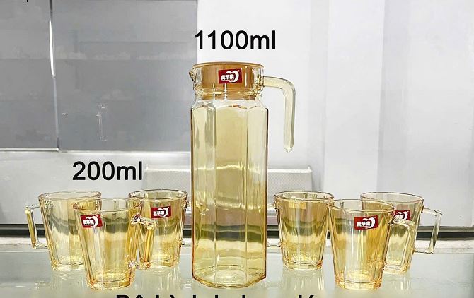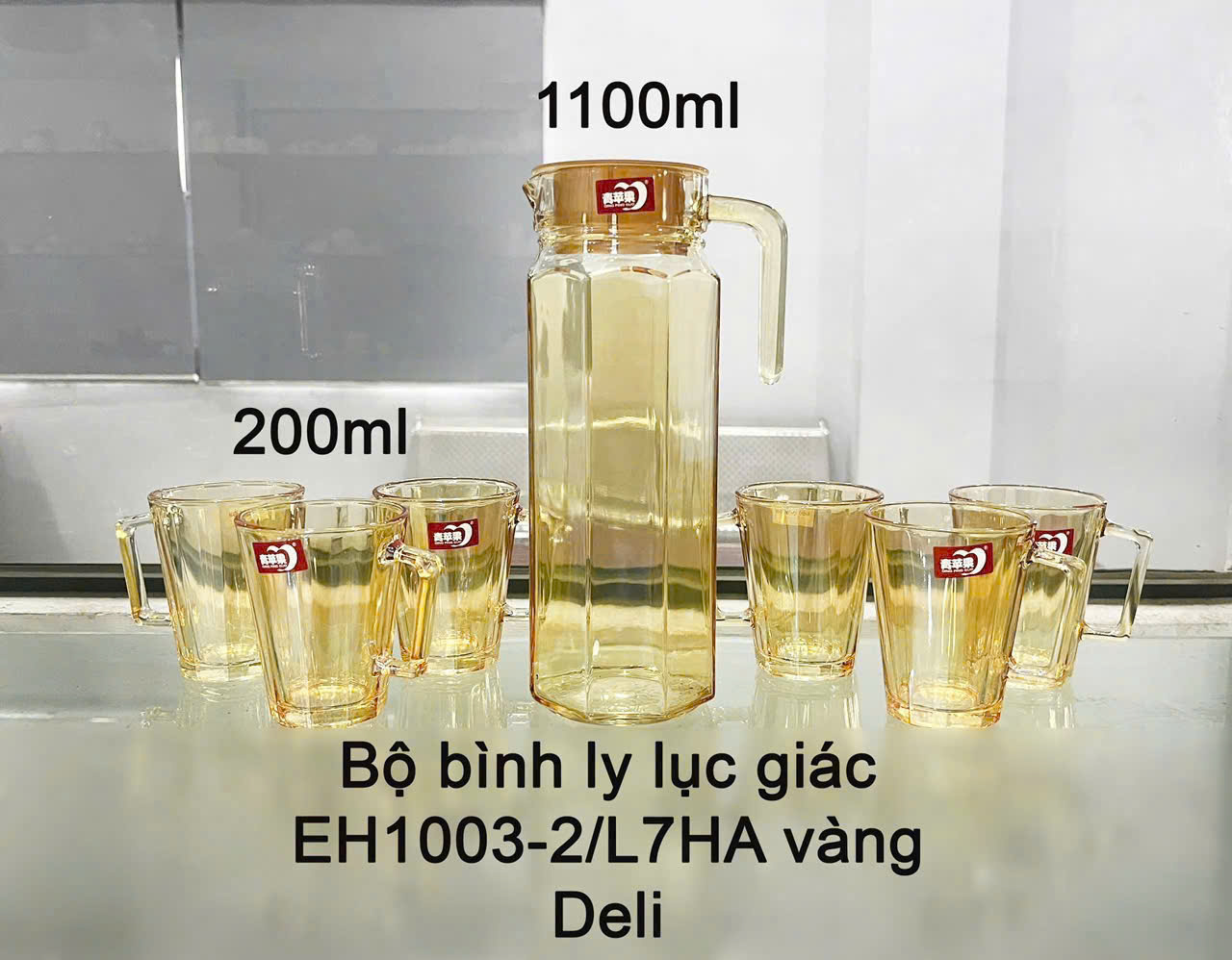 BỘ BÌNH THUỶ TINH VÀNG DELI LỤC GIÁC EH1003 2L7AH (T6)