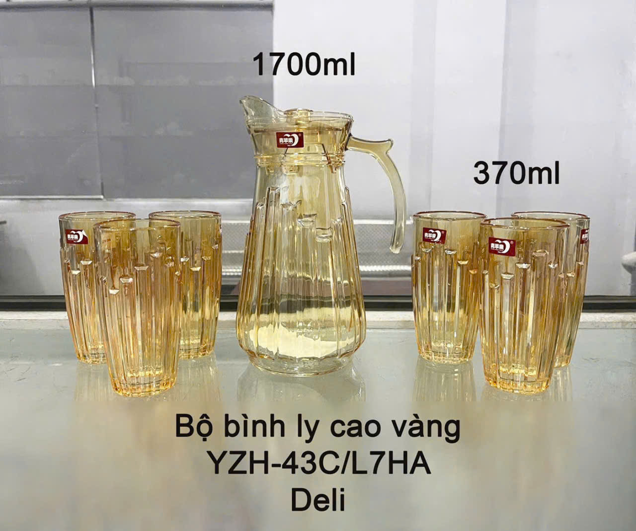 BỘ BÌNH THUỶ TINH VÀNG KÈM 6 LY 370ML YZH-43CL7HA (T6)