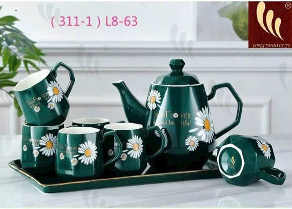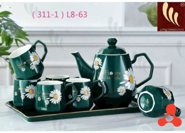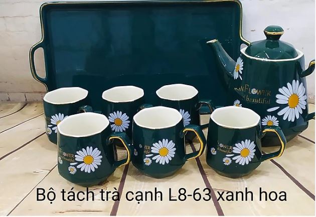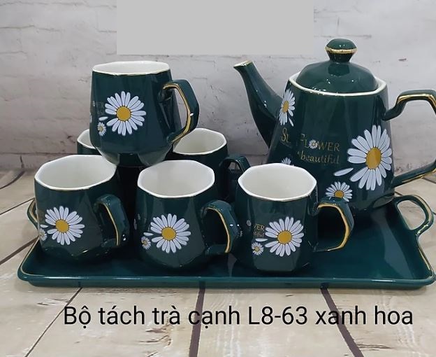 • BỘ BÌNH TRÀ GỐM SỨ CẠNH HOA XANH CÓ KHAY