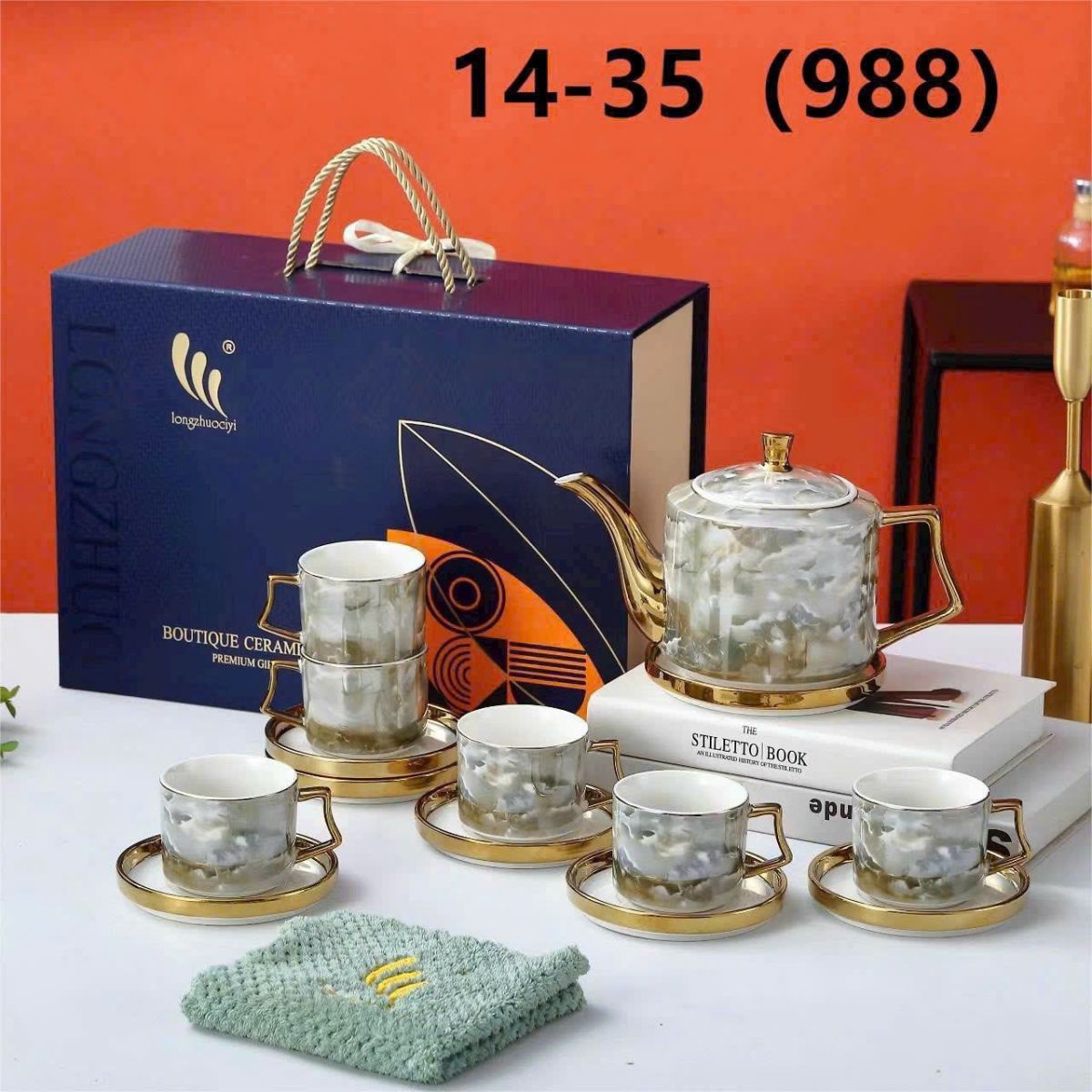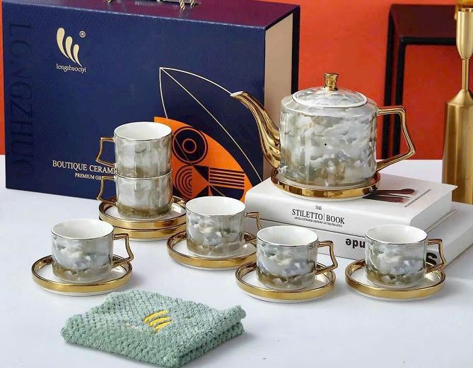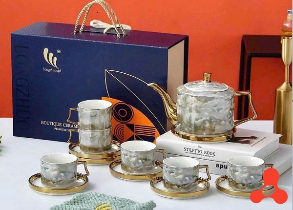 • BỘ BÌNH TRÀ GỐM SỨ NHỦ VÀNG SANG TRỌNG
