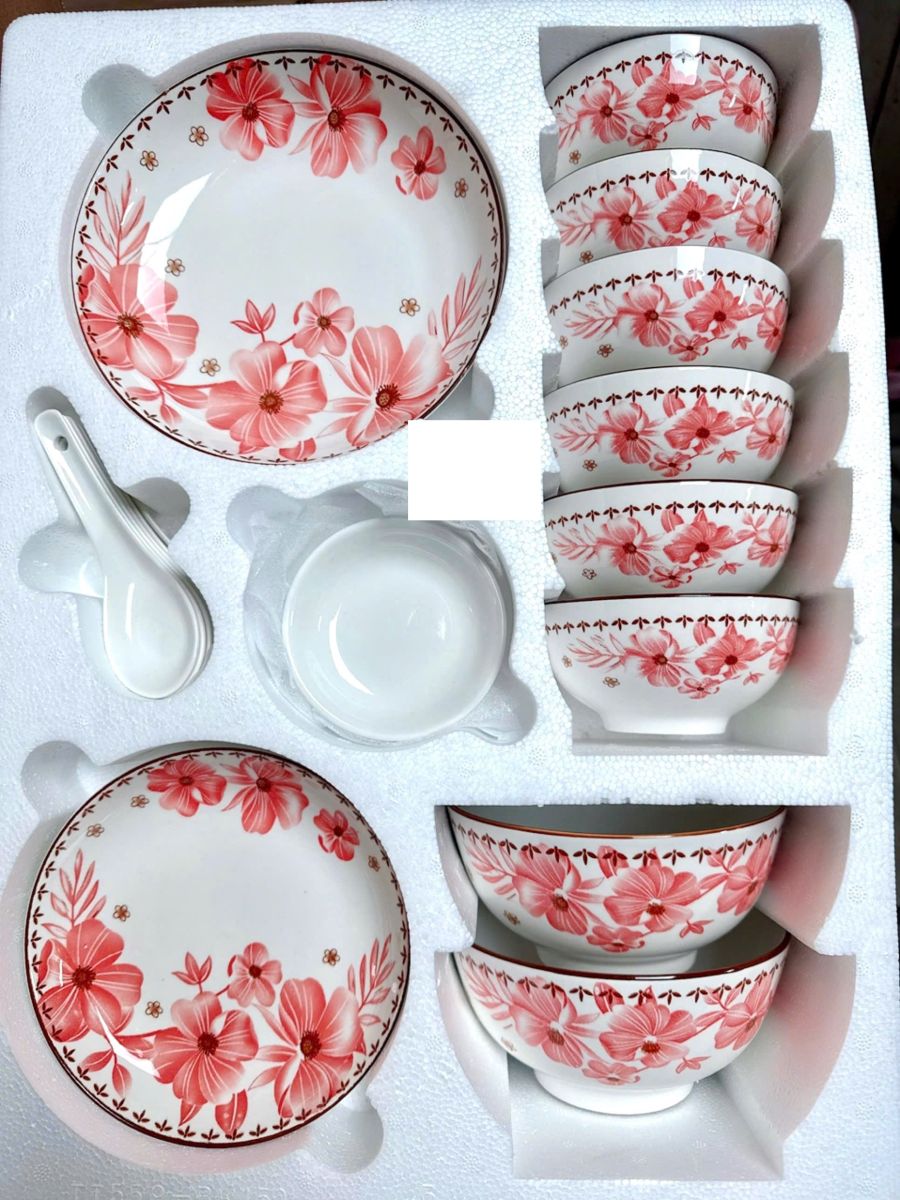 Màu Sắc và Hoa Văn: Với màu sắc nền nã và hoa văn duyên dáng, bộ chén này đặc biệt phù hợp với những không gian bếp hiện đại và sang trọng.