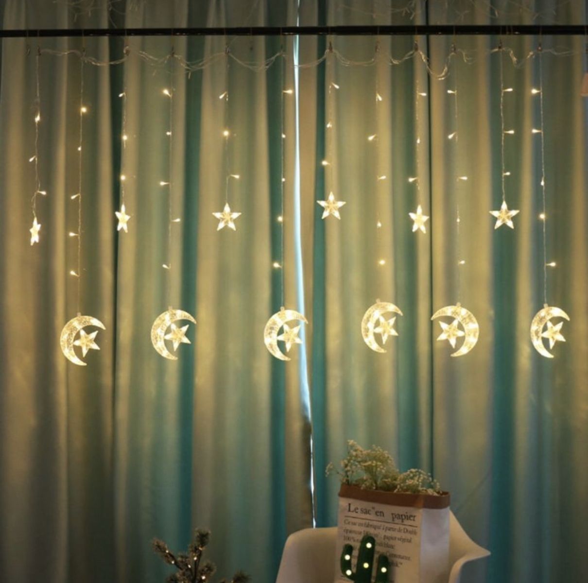 DÂY ĐÈN THẢ RÈM 12 TRĂNG SAO VÀNG