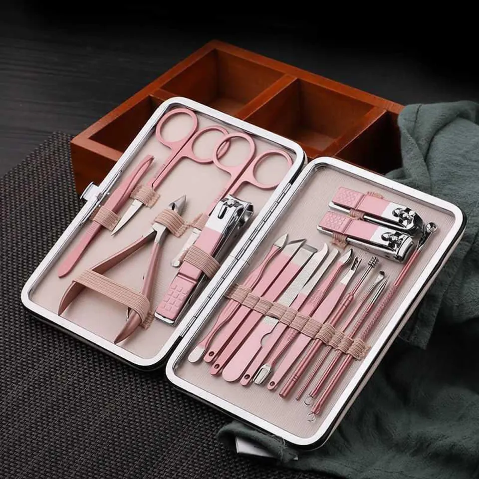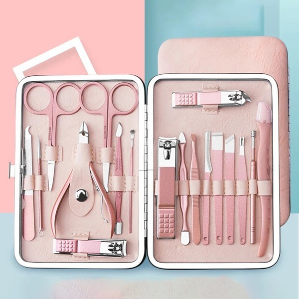- Bộ sản phẩm gồm kìm bấm, dũa, kéo, cây ngoáy tai, nặn mụn... 18 chi tiết siêu xịn, mẫu mới.