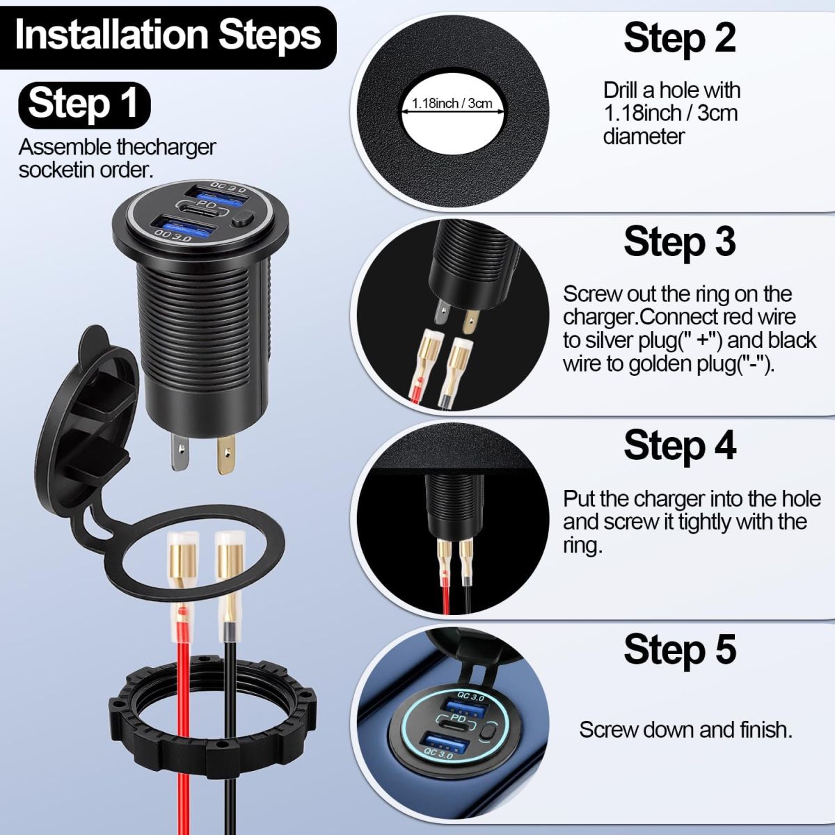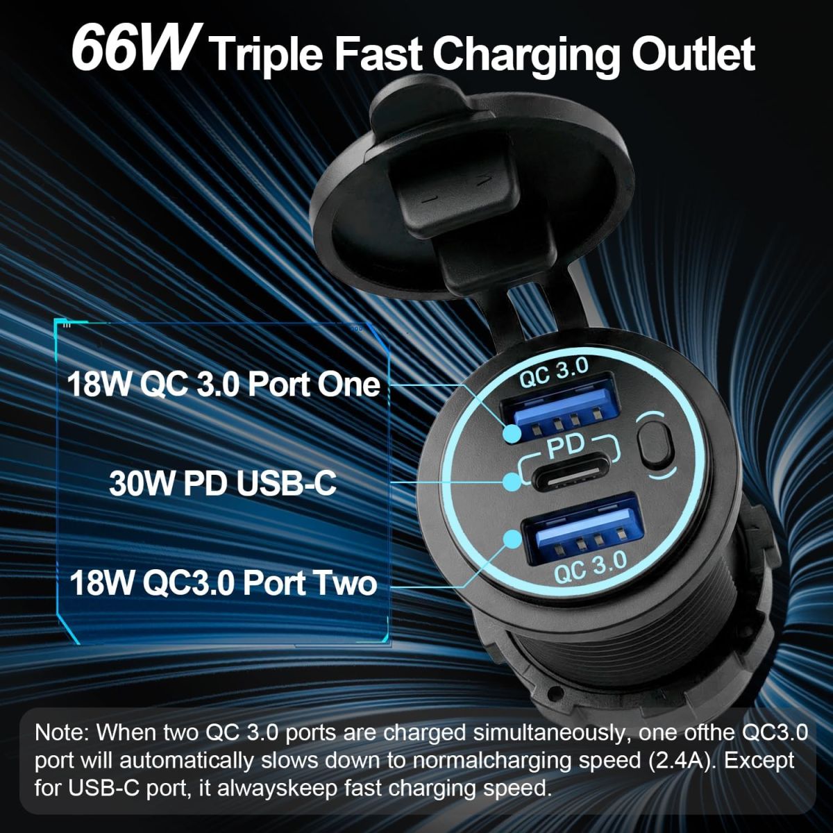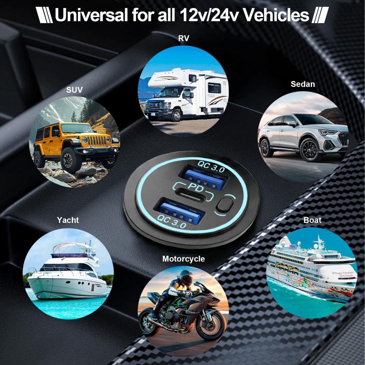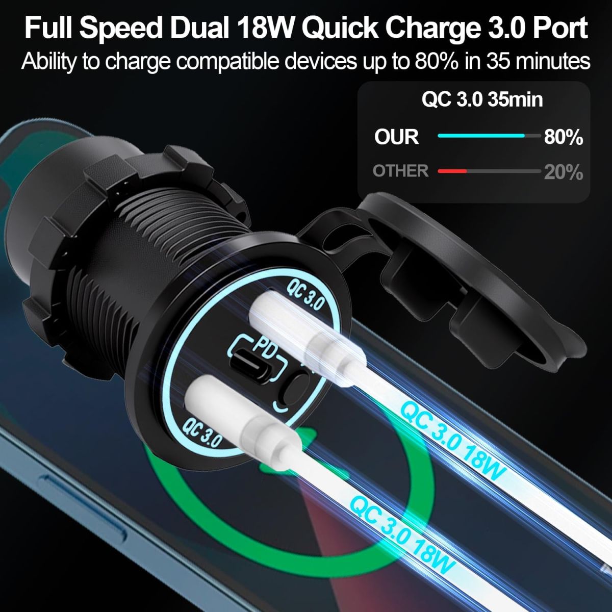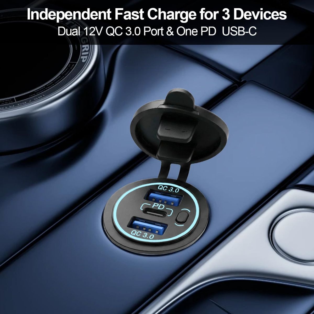 BỘ SẠC USB 12V 20W ĐA NĂNG CHỐNG NƯỚC – 3 CỔNG SẠC NHANH QC3.0 + PD TIỆN LỢI