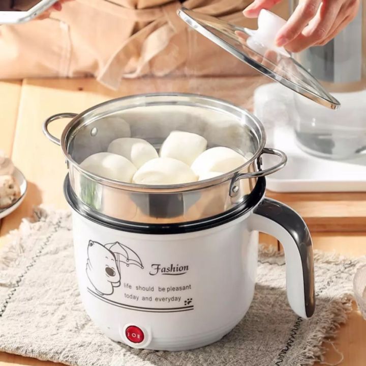 Ca Nấu Mì, Nấu Cơm Đa Năng Tiện Dụng Có Tay Cầm 1,8L - Nồi Lẩu Điện Mini Kèm Giá Hấp