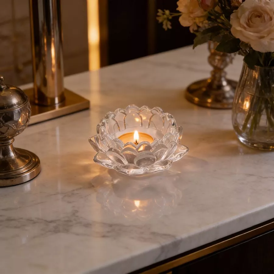 Trang trí đa năng: Giá đỡ nến hoa sen bằng thủy tinh pha lê này không chỉ là một sự lựa chọn hoàn hảo cho nến mà còn có thể được sử dụng như một món đồ trưng bày quyến rũ cho các món đồ trang sức nhỏ hoặc potpourri. Thiết kế linh hoạt của nó làm cho nó trở thành một bổ sung tuyệt vời cho bất kỳ căn phòng nào, cho dù đó là phòng khách, phòng ngủ hay khu vực ăn uống, tăng thêm vẻ sang trọng và tinh tế.