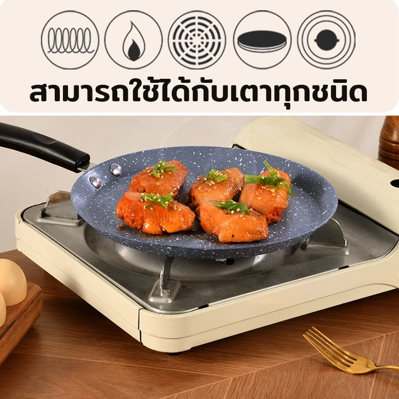 Bề mặt phủ chống dính cao cấp giúp hạn chế bám dính thực phẩm, dễ dàng nấu nướng và vệ sinh. Chảo truyền nhiệt đều, giúp món ăn chín nhanh và ngon hơn, đồng thời tiết kiệm dầu mỡ.