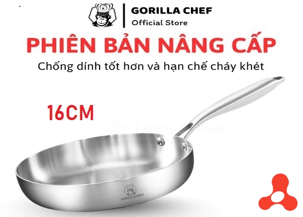 Chảo Inox 304 5 Lớp Cao Cấp 16cm Gorilla Chef – Bền Bỉ, An Toàn, Nấu Ăn Chuẩn Đầu Bếp