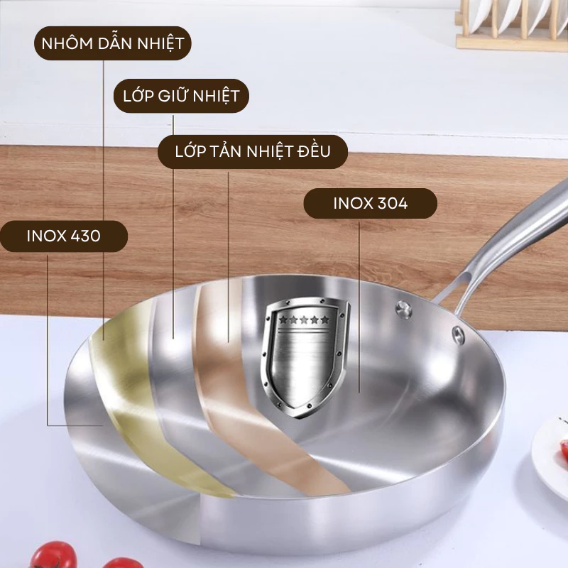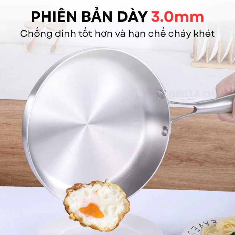 CHẢO INOX 304 5 LỚP CAO CẤP 24CM GORILLA CHEF (T20)