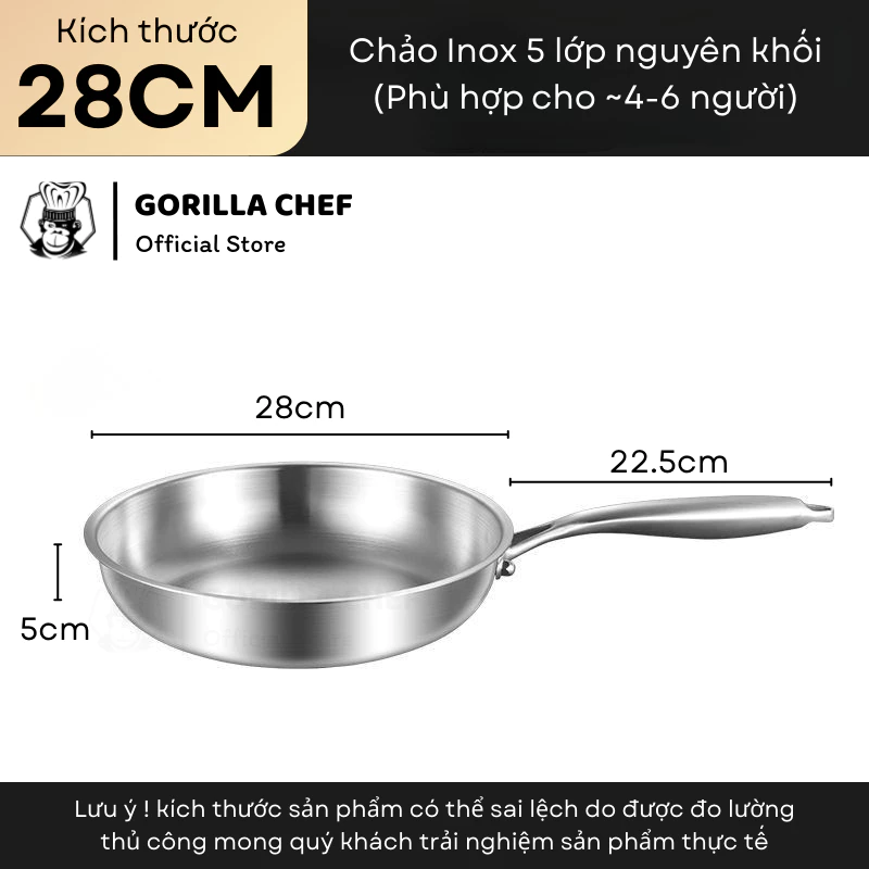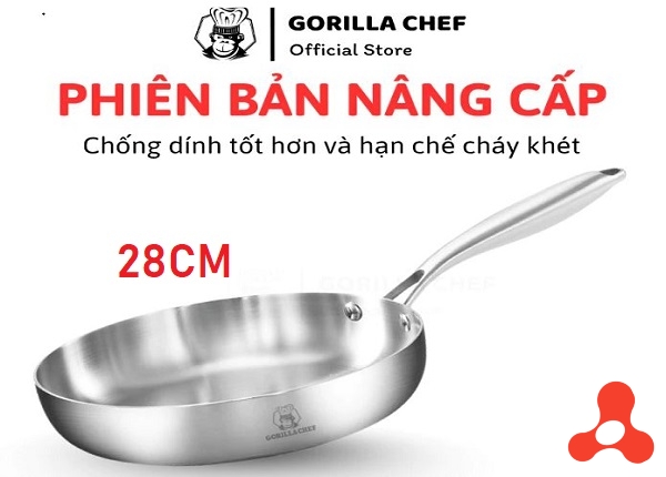 CHẢO INOX 304 5 LỚP CAO CẤP 28cm GORILLA CHEF (T16)