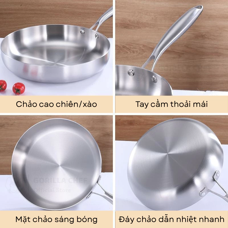 Tên sản phẩm: Chảo inox 304 5 lớp Gorilla Chef