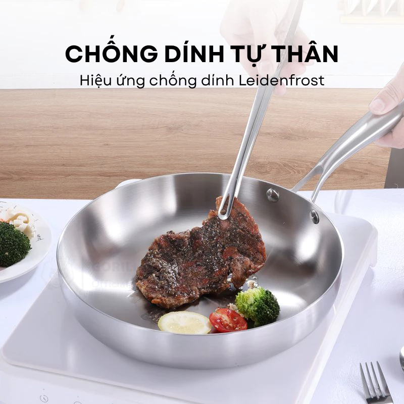 Chảo Inox 304 5 Lớp 28cm Gorilla Chef Cao Cấp | Chảo Chống Dính Tổ Ong, Dùng Bếp Từ, Bền Đẹp, An Toàn (T16)