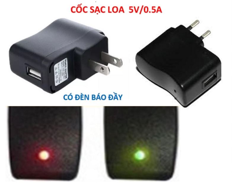 • CỐC SẠC 5V 1A CỔNG USB CÓ ĐÈN BÁO SẠC