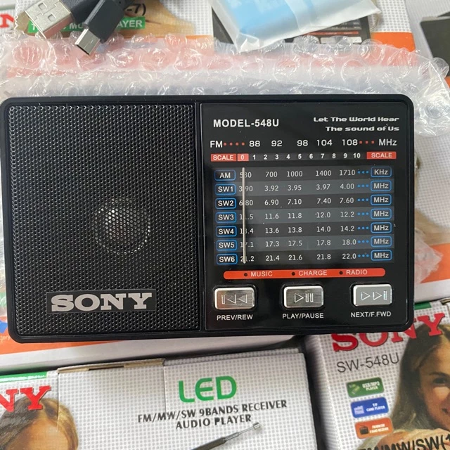 Mô tả chức năng Đài Radio Sony 8 Band SW-548 Đọc Usb, Thẻ nhớ, Đèn Led Đài phát thanh FM phát sóng, cũng như các tập chơi âm thanh định dạng MP3 / WMA (nhạc và audiobook). Radio Sony Sw-548