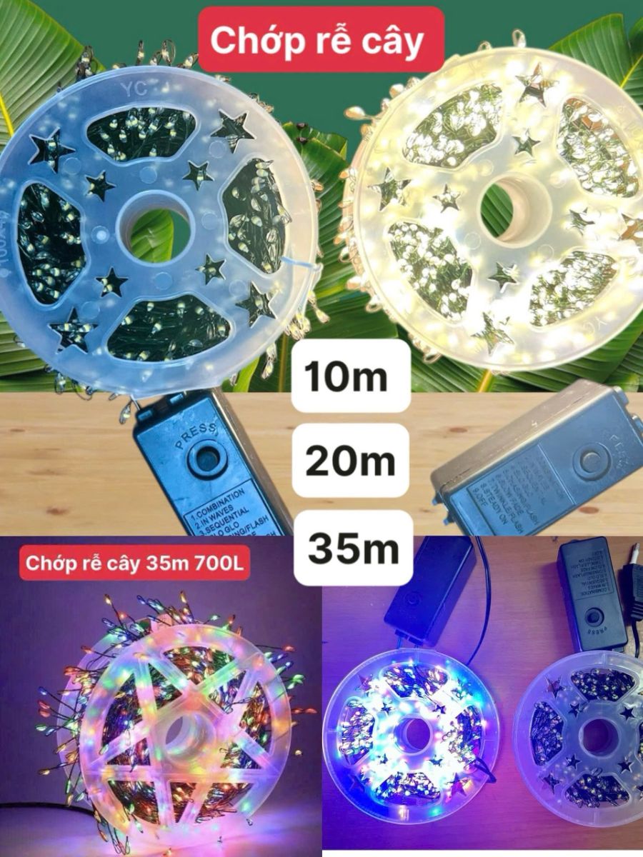 DÂY ĐÈN LED RỄ CÂY TRANG TRÍ DÀI 10M SÁNG VÀNG, ĐỦ MÀU