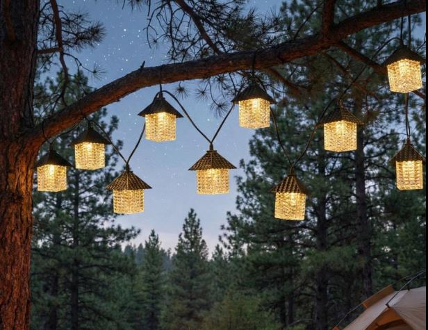 DÂY ĐÈN LED SÁNG VÀNG CHỐNG NƯỚC HÌNH NGÔI NHÀ DÀI 5M - 10 BÓNG