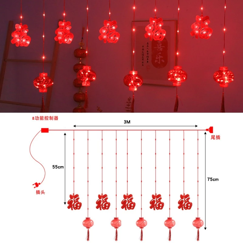 DÂY ĐÈN, LỒNG ĐÈN TRANG TRÍ TẾT MÀN CHỮ XUÂN DÀI 3M