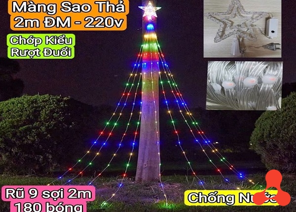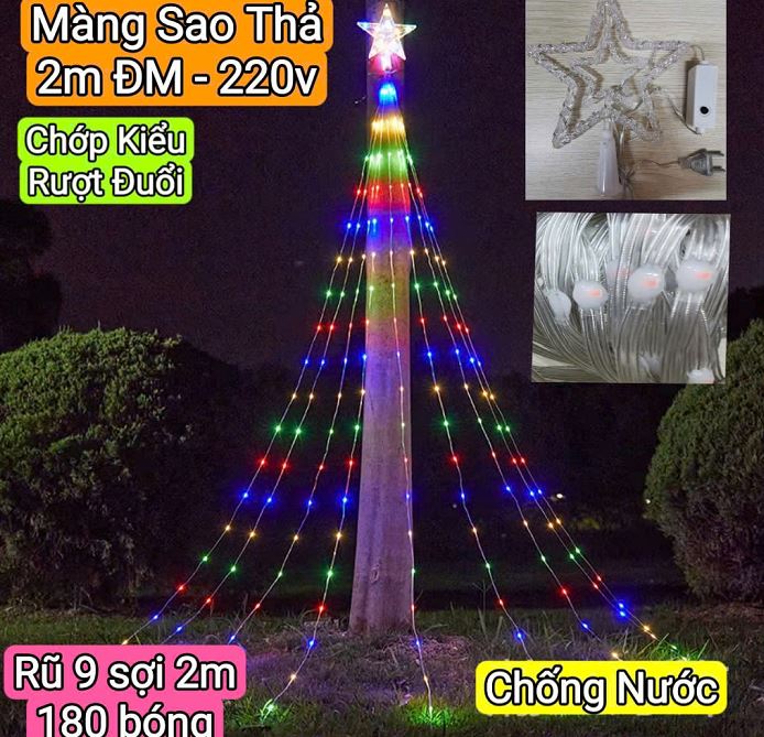DÂY ĐÈN SAO THẢ MÀN ĐỦ MÀU DÀI 2m 180 LED CHỚP RƯỢT ĐUỔI
