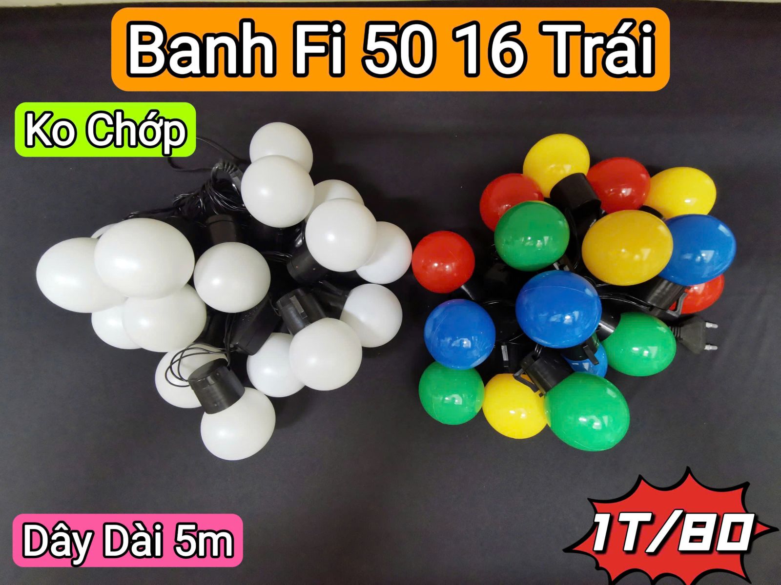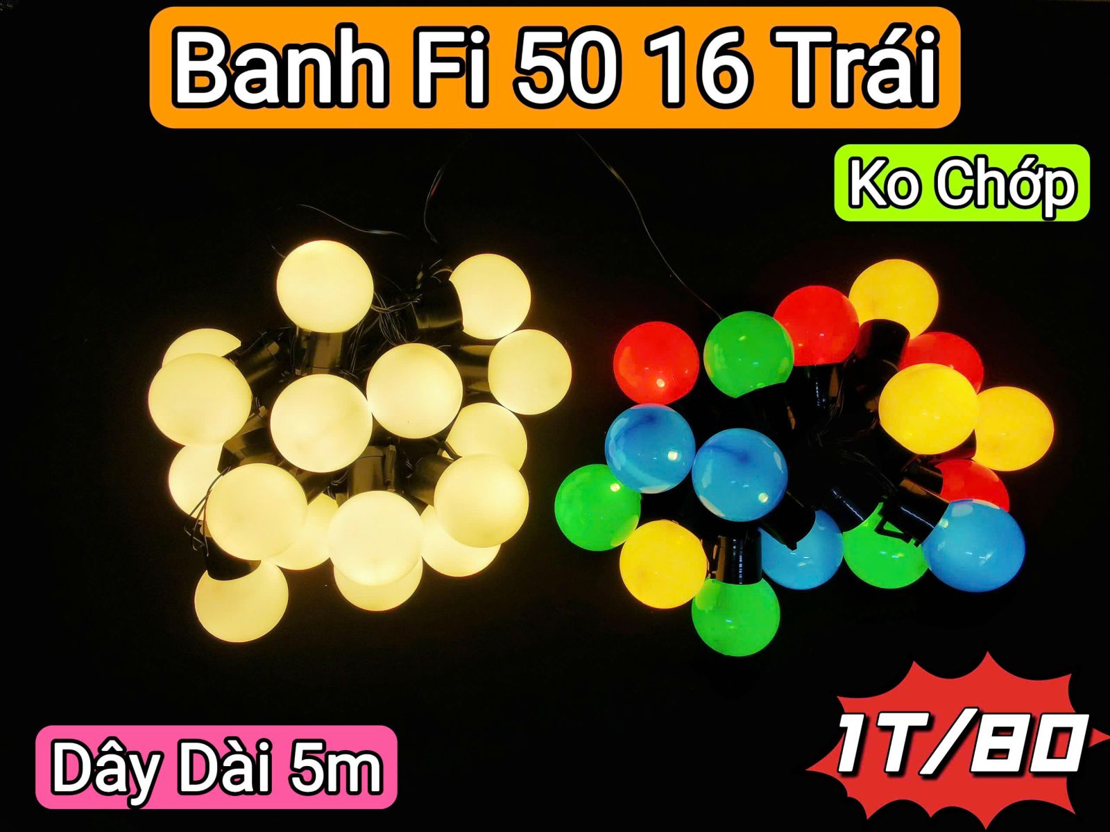 DÂY ĐÈN TRANG TRÍ BANH FI-50 ĐỦ MÀU DÀI 5M 16 TRÁI