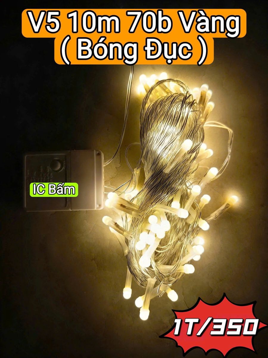 DÂY ĐÈN TRANG TRÍ V5 10M 70 BÓNG SÁNG VÀNG