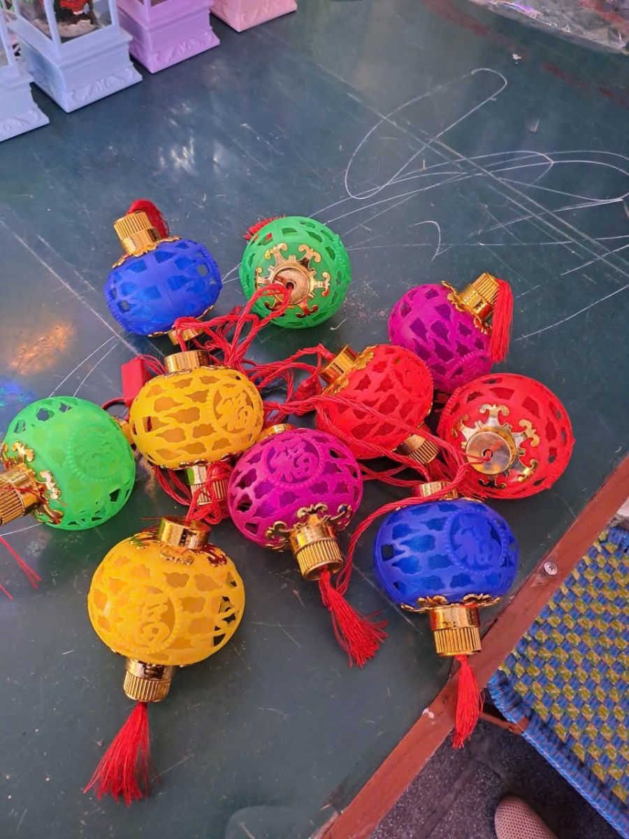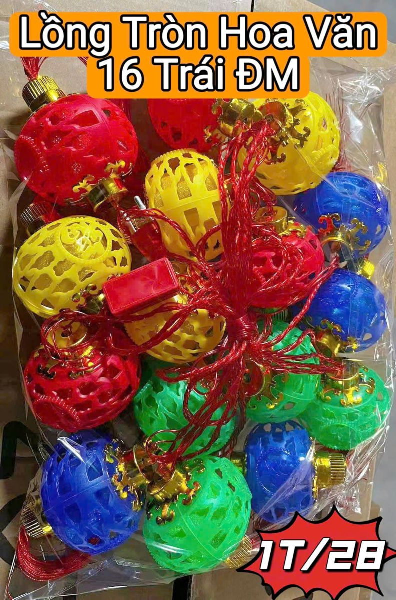 DÂY LỒNG ĐÈN TRÒN HOA VĂN ĐỦ MÀU 16 TRÁI