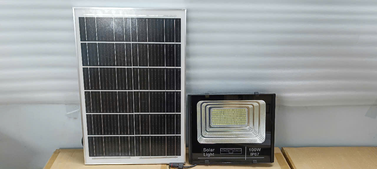 ĐÈN PHA NLMT 100W SOLAR HIỂN THỊ PIN - 4 PIN