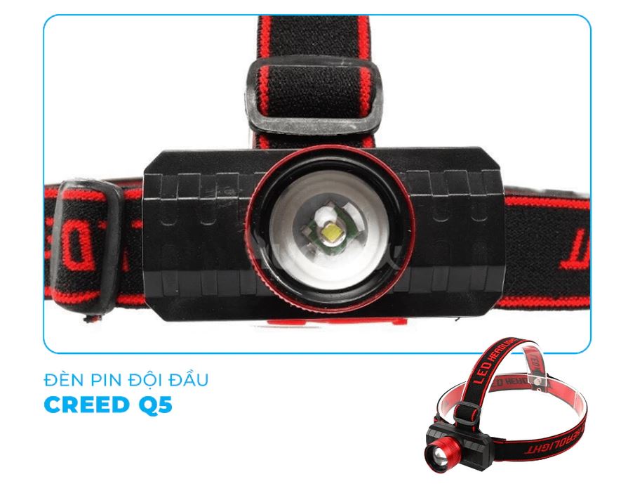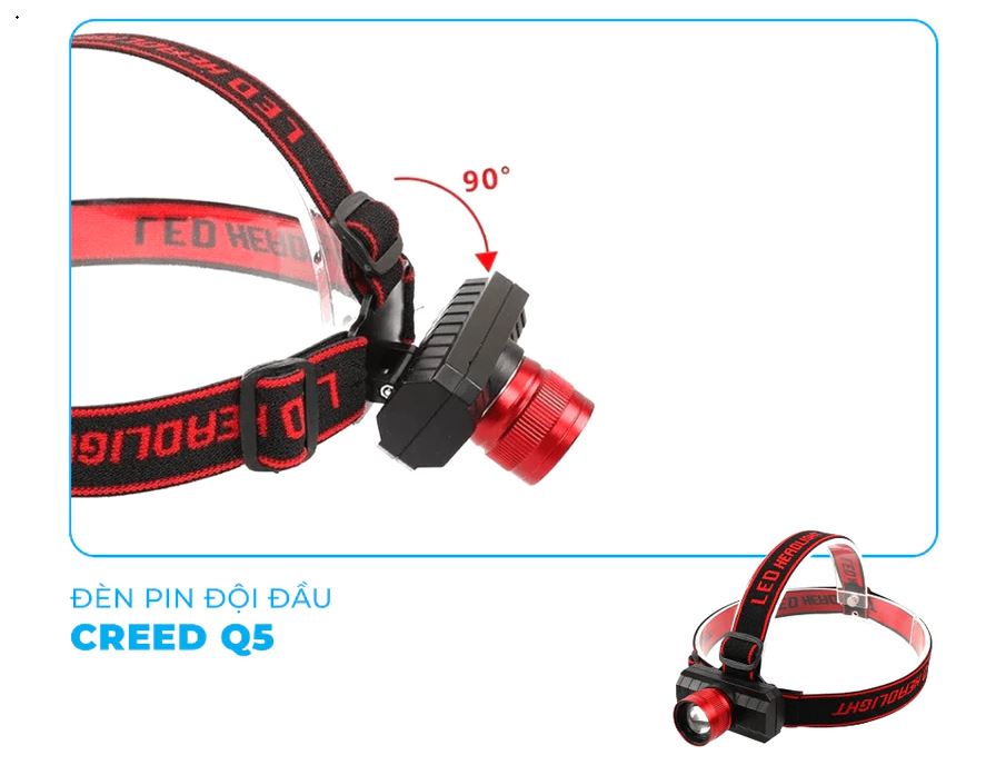 -> Đèn Pin đội đầu có 3 tính năng: siêu sáng, sáng vừa, sáng nhấp nháy SOS