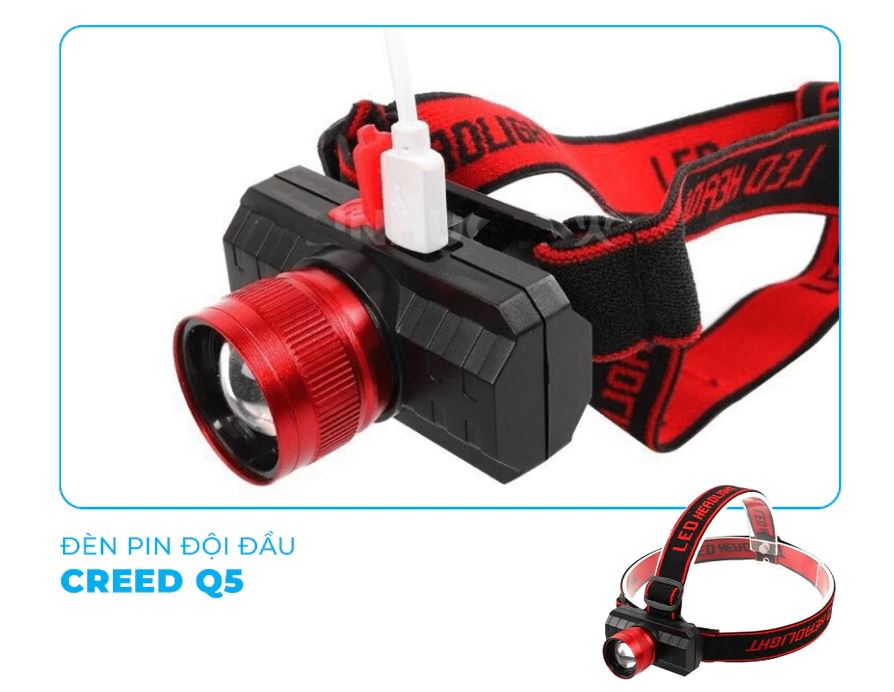 Đèn Pin Đội Đầu có thể Zoom và sạc Pin