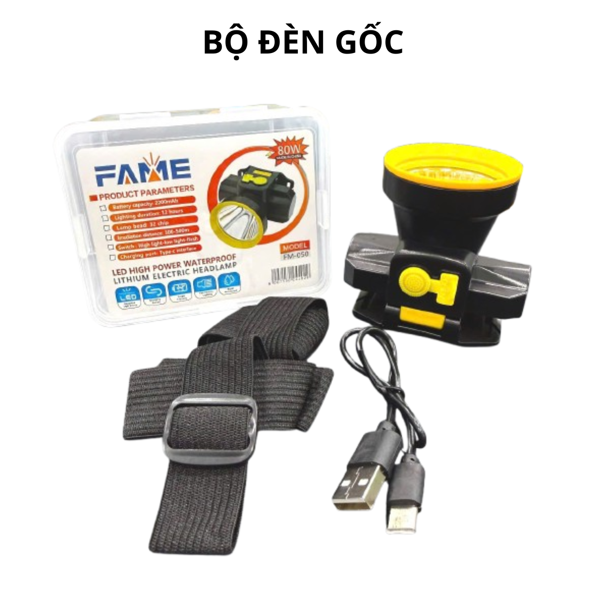 + Bộ sản phẩm bao gồm / Bộ đèn gốc từ nhà máy: Dây thun đeo đầu, Cáp loại c, Hộp bảo và Đèn pin vương đầu